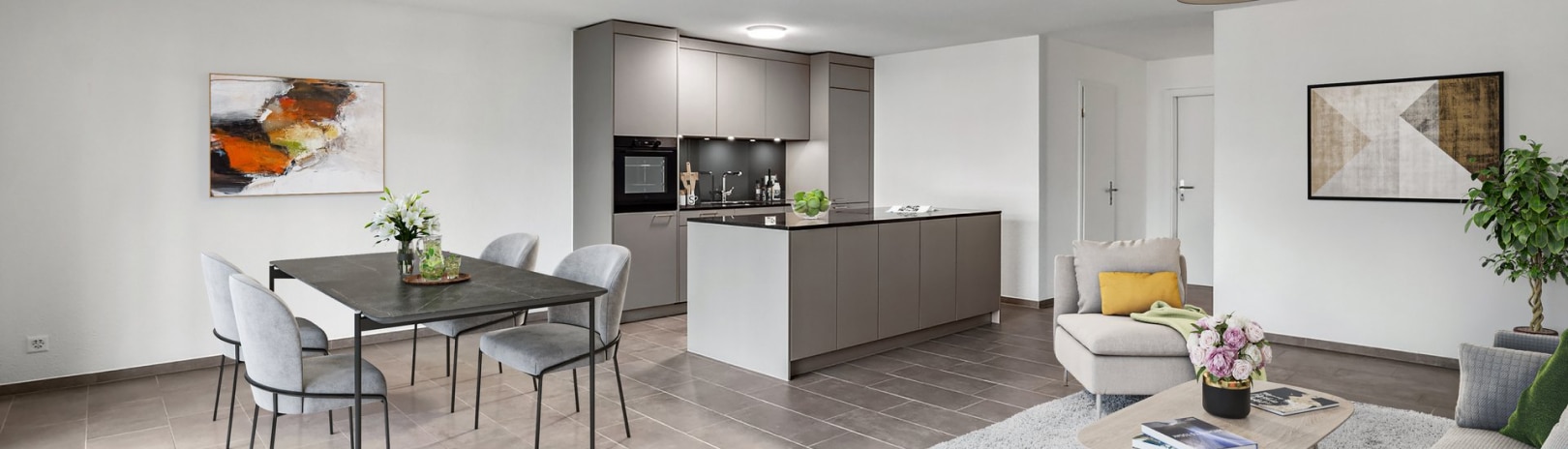 Grüttbach in Luterbach – Naturverbundenheit und Lebensqualität vereint. Umgeben von idyllischer Landschaft bietet das Grüttbach zeitgemäßen Komfort. Von 2.5 bis 4.5 Zimmer-Wohnungen, alle exquisit gestaltet. Große Fenster, Balkone und atemberaubende Ausblicke. Hochwertige Materialien und moderne Ausstattung.